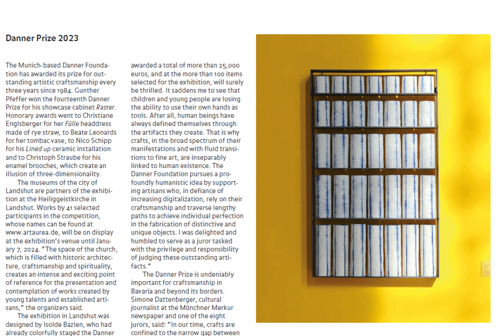Der Artikel zur Ausstellung des Danner Preises 2023 in der Heiliggeistkirche Landshut erschien im Magazin Art Aurea. Er kann hier als PDF heruntergeladen werden.